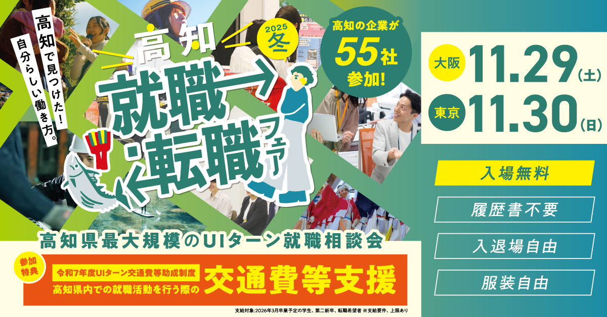 【参加情報:11/29(大阪)・11/30(東京)】高知就職・転職フェア2025冬